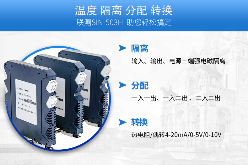 簡要描述:將PT100等熱電阻跟熱電偶信號轉(zhuǎn)換成各種電流、電壓等標(biāo)準(zhǔn)模擬量信號,可以與PC機(jī)、PLC、DCS等實(shí)現(xiàn)工控監(jiān)測連接。抗干擾能力強(qiáng),遠(yuǎn)傳不受其他設(shè)備影響。輸入、輸出選擇范圍寬,準(zhǔn)確度高。電源可選擇,導(dǎo)軌安裝便于檢測與安裝。廣泛應(yīng)用于各種對溫度集中測量的監(jiān)控系統(tǒng)中。