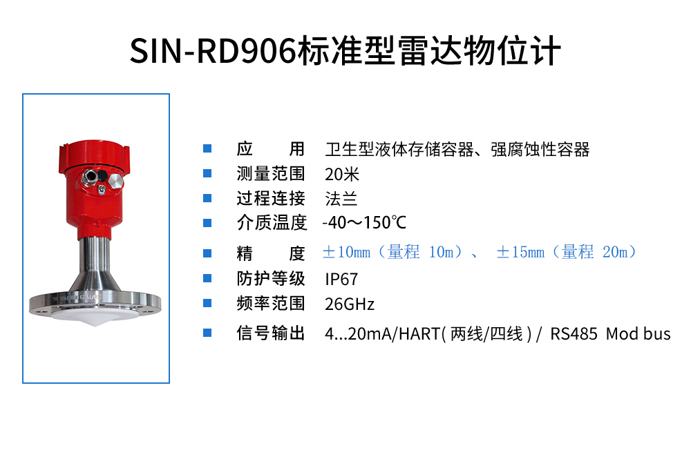 當前位置:首頁 > 雷達液位計  >  SIN-RD906雷達液位計_適用于衛生型液體存儲容器_