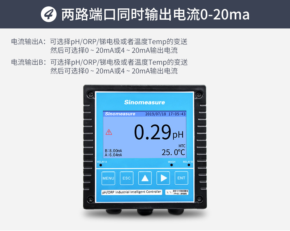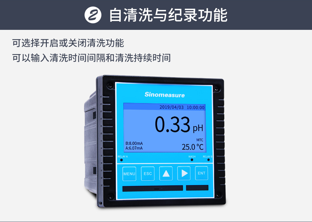 聯測_SIN-pH/ORP8.0大屏4.3英寸在線pH計_帶記錄_帶清洗_