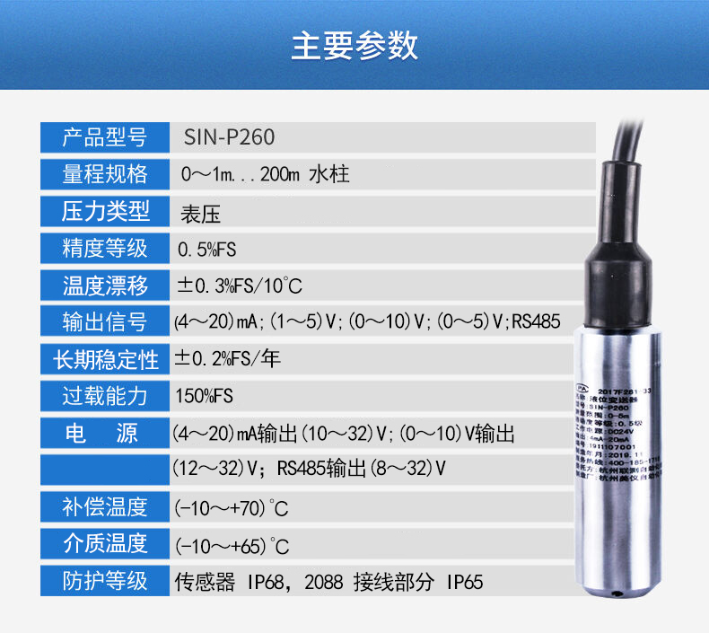 聯測_SIN-P260投入式液位計/水位計_消防水箱_污水池_水庫液位_